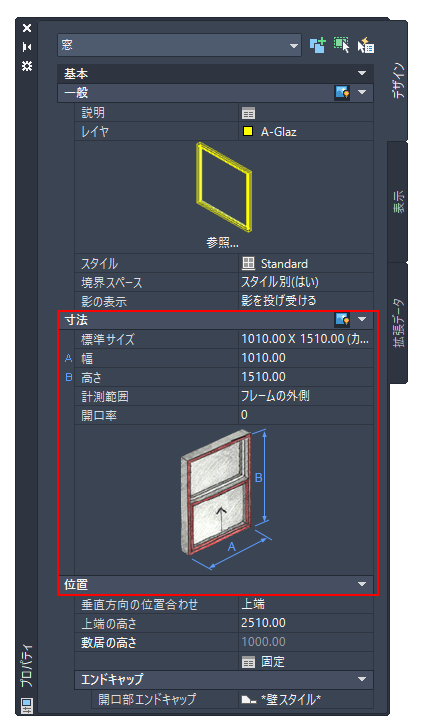 | フレームの中心(コーナー窓のみ) | [計測範囲]で[フレームの中心]を選択します。 |