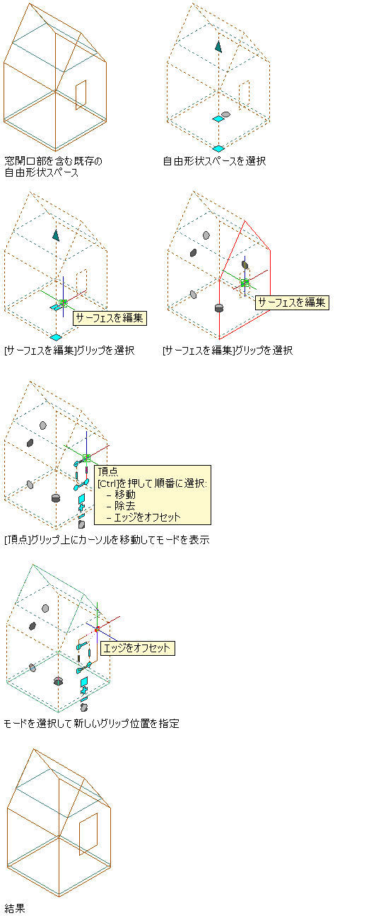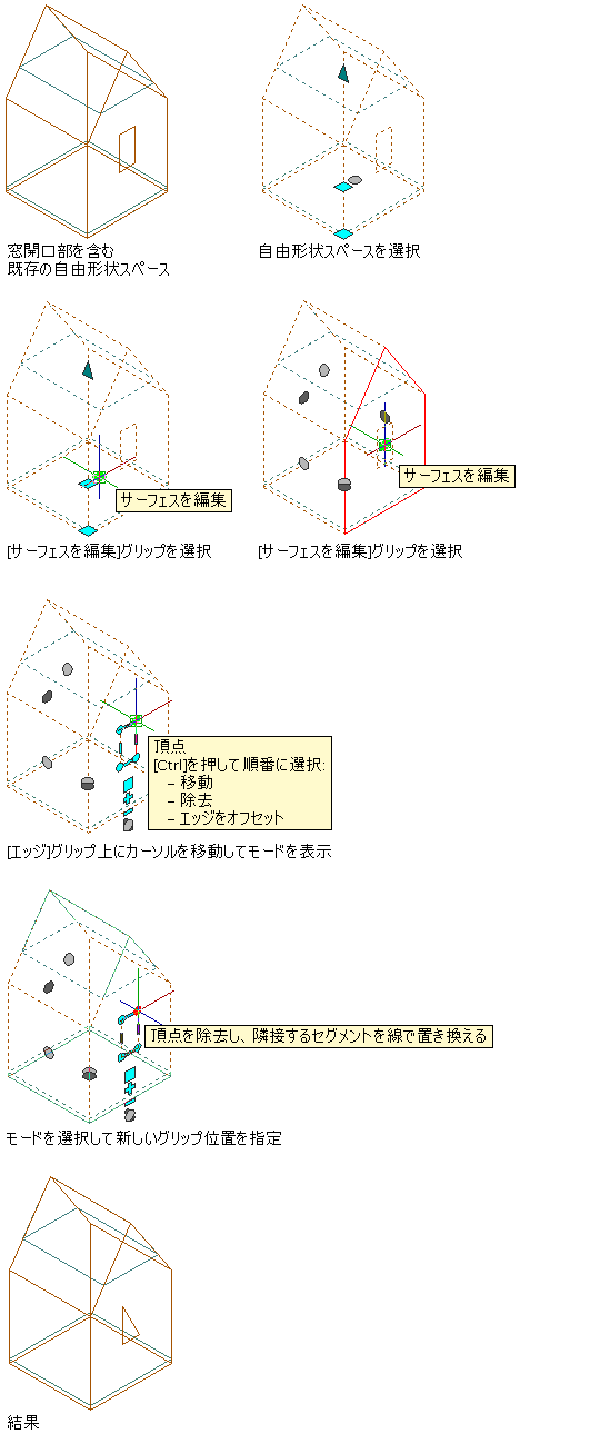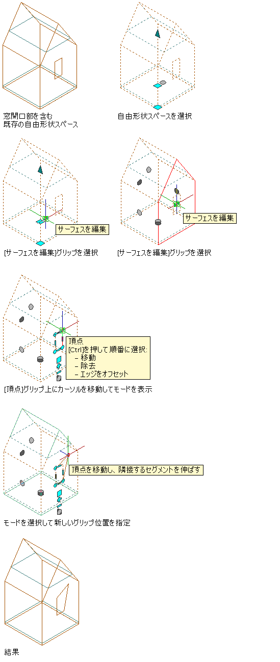 自由形状スペース サーフェス上の窓開口部の頂点を移動する