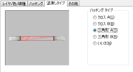 | ダブル ハッチングを選択するには | [タイプ]フィールドで[ユーザ定義]を選択して、[ダブル ハッチング]を選択します。 |
