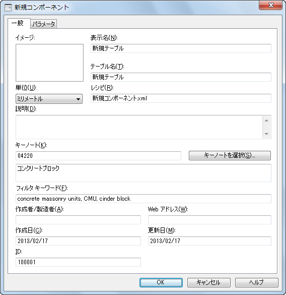 | フィルタ キーワード | このコンポーネントを検索する場合に使われるコンマで区切られたキーワードのリスト。このフィールドはオプションです。 |