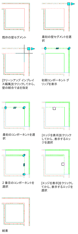 前に非表示にした壁コンポーネントのエッジを表示することで壁の交差を修正するには、次の操作を実行します。