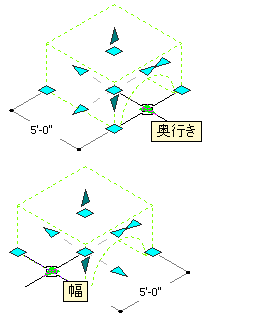 グリップを使用してマス要素の寸法を編集するには、次の手順を実行します。