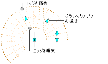 螺旋階段グラフィック パス ロケーション、およびエッジの編集グリップ