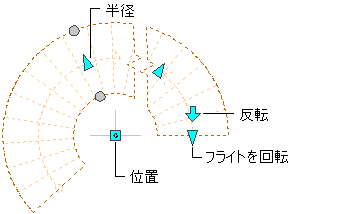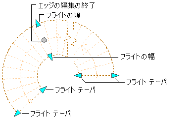 | (エッジ) | エッジを移動することで、らせん階段の一続き階段の幅を変更します。 |