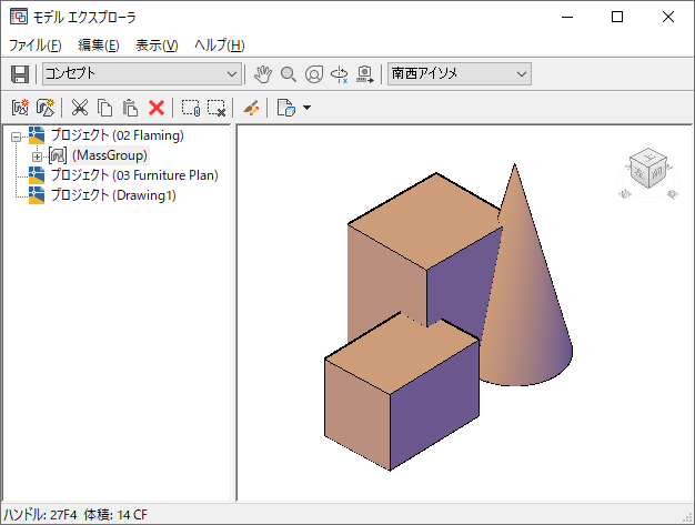 モデル エクスプローラは、マス要素とマス グループを作成、表示、操作するウィンドウです。モデル エクスプローラでは、ユーザが実行するマス要素やマス グループの操作を、オブジェクト ビューアを使用してプレビューします。
