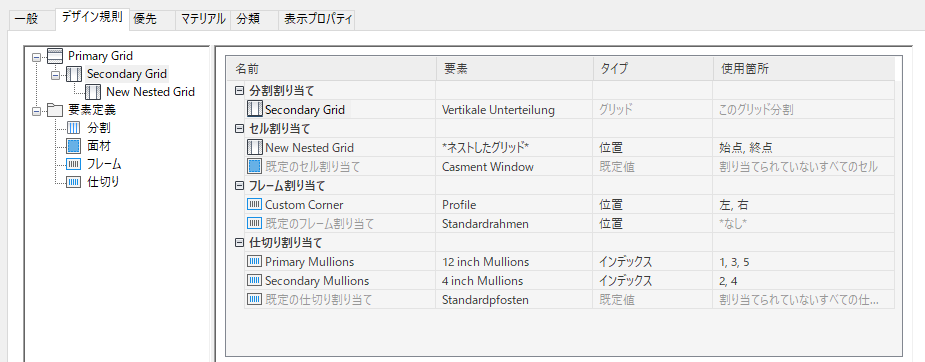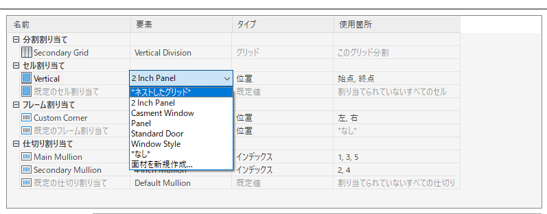 カーテン ウォール内にネストしたグリッドを作成するには、次の手順を実行します。ネストしたグリッドとは、グリッド内のグリッドです。それぞれのネストしたグリッドには、独自の分割、セル割り当て、フレーム、マリオンがあります。既定では、ネストしたグリッドに対してフレームが選択解除になります。