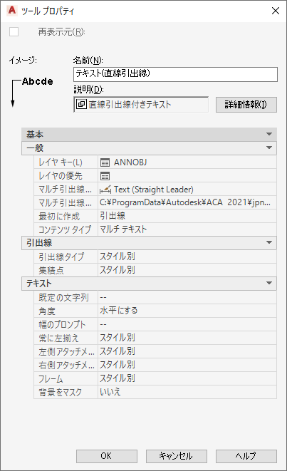 - 引出線のツール プロパティは慎重に検討してください。単純な引出線をより少ない時間でより標準化された形で作成できる、いくつかの事前設定があります。