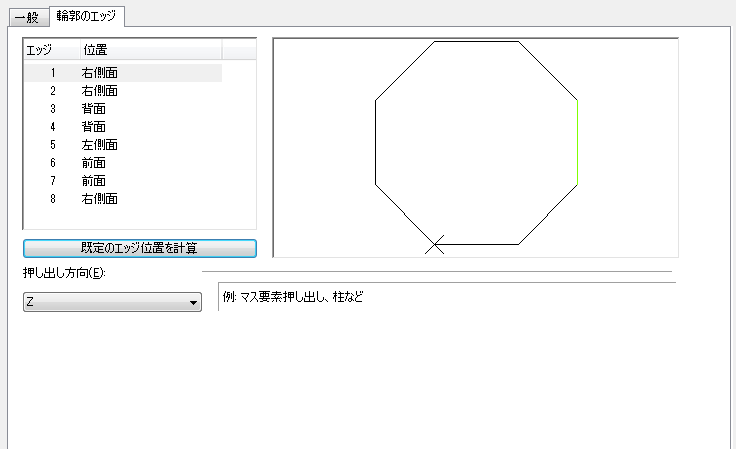 選択できるエッジ位置は、選択した押し出し方向によって異なります。