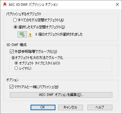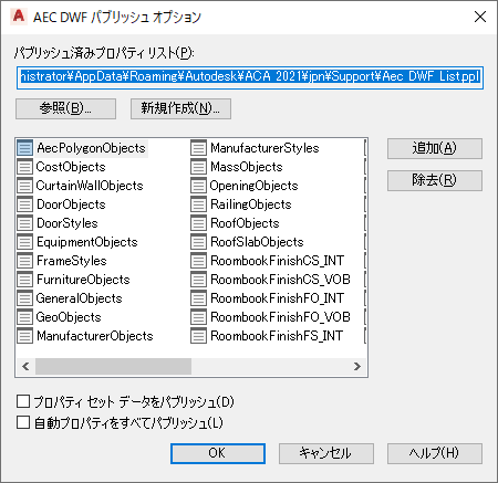 これにより、DWF または DWFx ファイルに書き出すように選択したオブジェクトに関連付けられているすべての自動プロパティがパブリッシュされます。