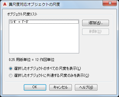 - [異尺度対応オブジェクトの尺度]ダイアログ ボックスで、[追加]をクリックします。