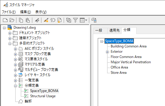 標準とともに分類を使用したい場合は、分類名に対するリソース セットを作成した後、AecSpaceOffsetClassification タイプのオブジェクトを標準に追加する必要があります。 このクラスは、標準および規則の実装におけるすべての分類関連機能を処理します。