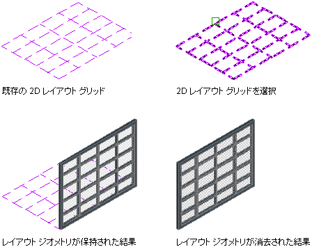 2D レイアウト グリッドを基に組合せ窓を作成するには、次の手順を実行します。図面に 2D レイアウト グリッドが既に存在する場合は、簡単に組合せ窓に変換することができます。レイアウト グリッドを使い慣れている場合は、これが組合せ窓の効率的な作成方法です。また、組合せ窓コマンドでいろいろな操作を試し、さらに理解を深める方法としても適しています。