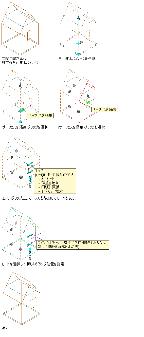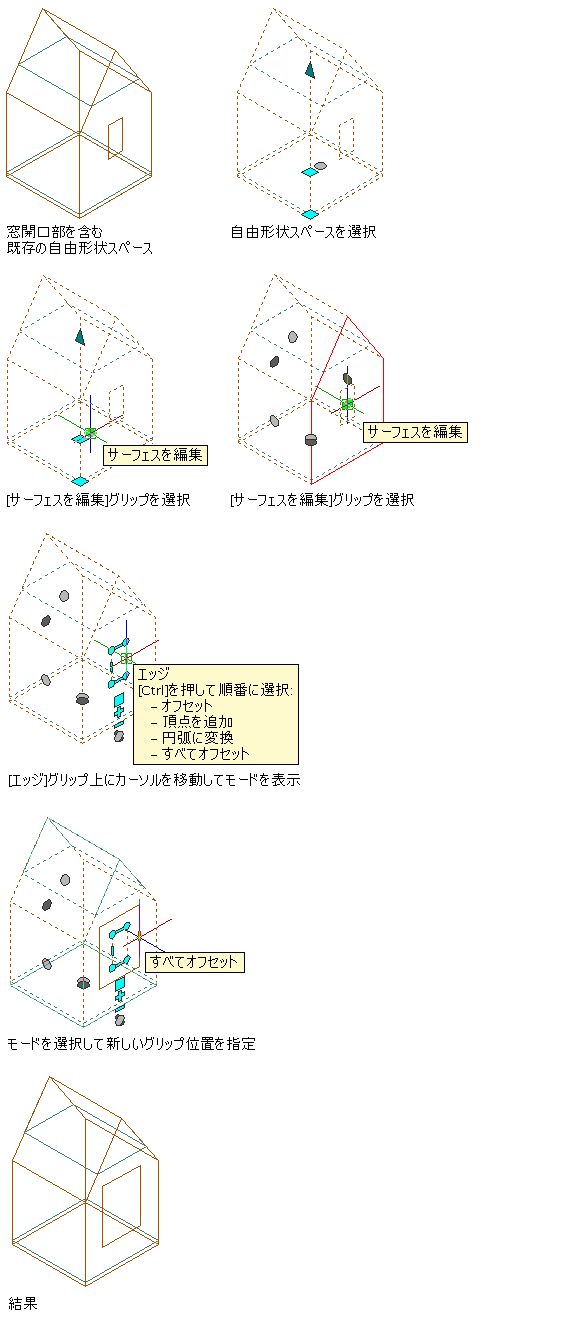 自由形状スペース サーフェス上の窓開口部のすべてのエッジをオフセットする