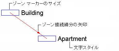 ゾーンの文字スタイル、ゾーン マーカー サイズ、ゾーン接続線分の矢印を定義するには、次の操作を実行します。