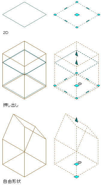 | 自動調整されない押し出し 3D スペース |
