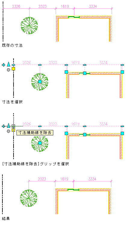 スタイル定義されていない寸法点は、オブジェクトの OSNAP 点を指定することで、または図面でオブジェクトに関連付けられていない点を指定することで、生成されている場合があります。スタイル定義済み寸法点とは異なり、このような点は、いったん削除すると復元できません。ただし、必要であれば作成し直すことができます。