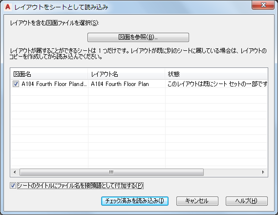 シートは、1 つまたは複数のシート セットに属します。すでに別のシート セットの一部になっているシートを読み込むことはできません。