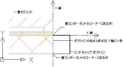 壁エンドキャップ ポリラインを単一コンポーネント壁セグメントに追加する