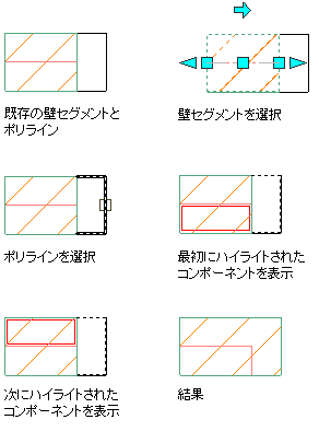 壁エンドキャップ ポリラインを単一コンポーネント壁セグメントのコンポーネントに関連付けるには、次の操作を実行します。