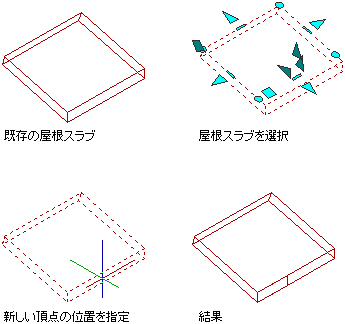 新しい頂点が、指定した点に垂直な一番近いスラブ エッジに追加されます。スラブまたは屋根スラブに垂直な点がない場合、頂点は追加されません。