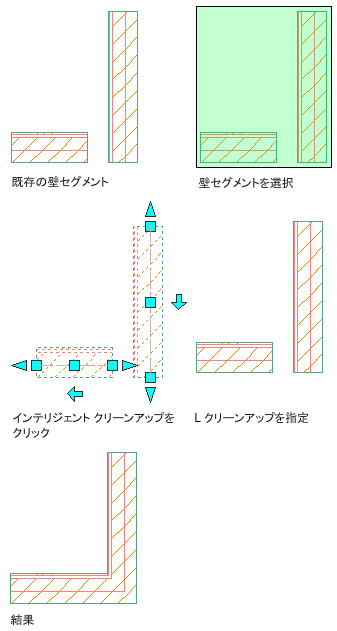 - L 字型クリーンアップでは、同一線上にない 2 つの壁セグメントを一度に扱います。