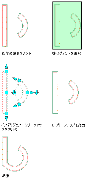 L 字型クリーンアップは、円弧の壁セグメントも同様に処理します。