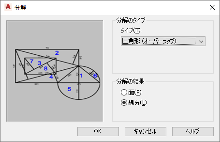 | 分解された各スペースを閉じたポリラインに変更するには |