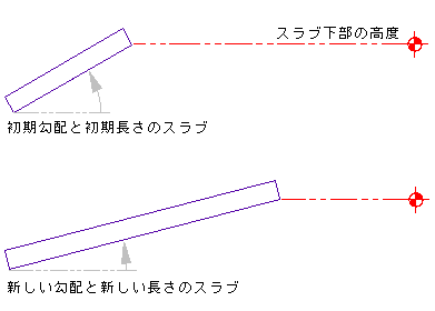 標準グリップ編集では、指定した点の Z 値とは無関係に、スラブまたは屋根スラブの勾配角度が維持されます。