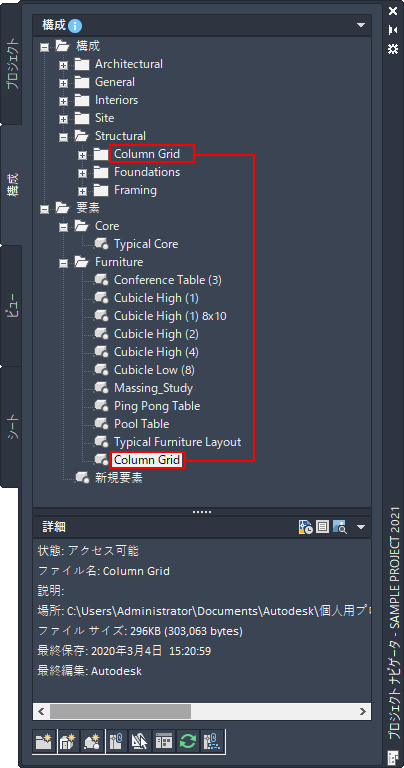 - ファイル エクスプローラ内で、構成を[要素]フォルダにドラッグしないでください。プロジェクト データの整合性が失われることがあります。