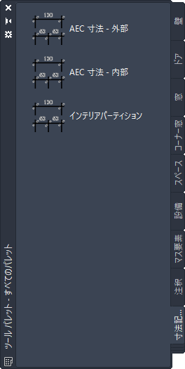 AEC 寸法ツールを含むツール パレット