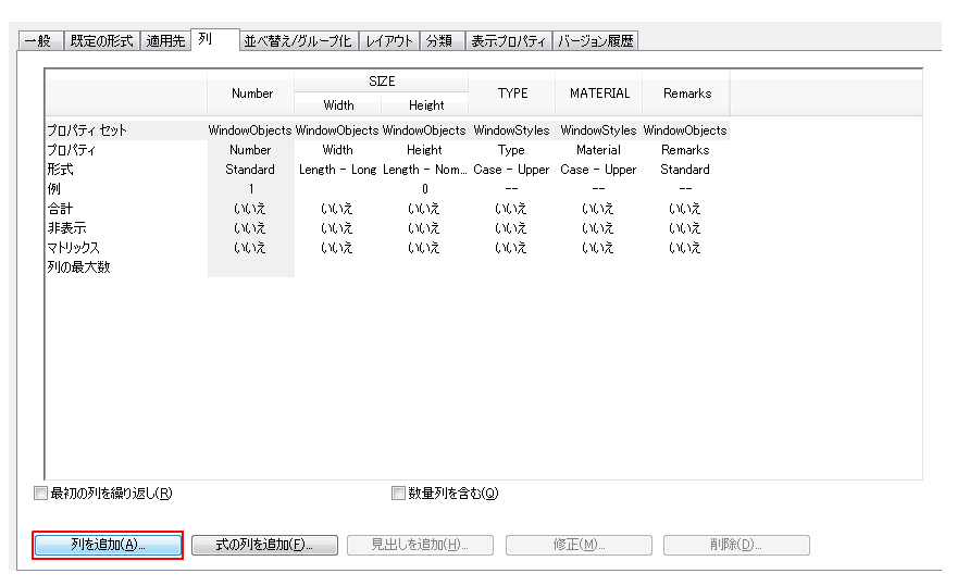 [列を追加]をクリックします。