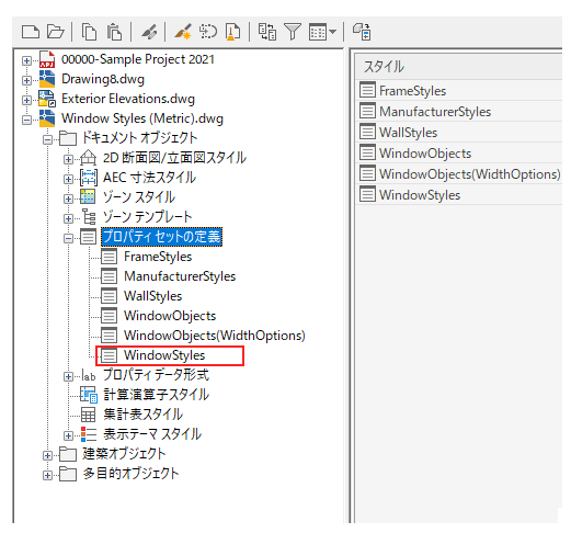 [プロパティ セットの定義]を展開し、[窓スタイル]を選択します。