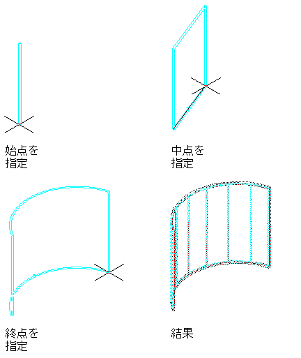 - 曲線カーテン ウォール セグメントの始点を指定します。