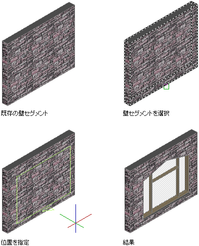 壁を選択するか、[Enter]を押して、組合せ窓の挿入点を指定します。