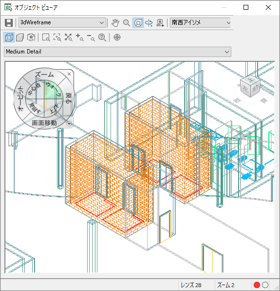 SteeringWheels は、ウェッジと呼ばれる各種のセクションに分割されたトラッキング メニューです。ホイール上の各ウェッジは、単一のナビゲーション ツールを表します。モデルの現在のビューを、さまざまな方法で画面移動、ズーム、または操作することができます。