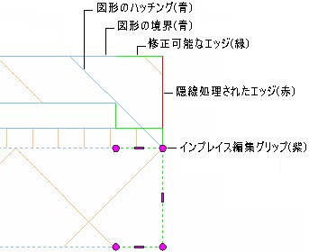 - ハッチング: この表示コンポーネントは、一時輪郭のハッチングの画層、色、線種のプロパティをコントロールします。このコンポーネントは、オブジェクト自体に割り当てられているハッチングとは独立しており、インプレイス編集モードでのみ表示されます。既定では、このコンポーネントは表示されません。