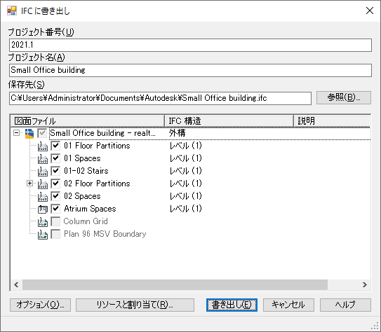 図面を IFC ファイルとして書き出し、選択した外部参照を含めるには、次の操作を実行します。書き出す図面は、作図画面でアクティブにする必要があります。これは、既定で (Ifc)Site へマップされます。