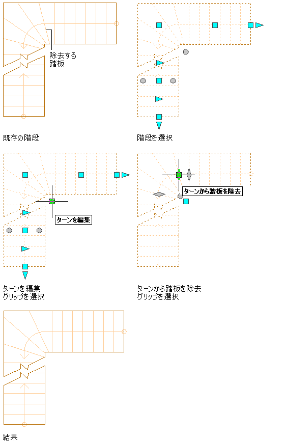 曲階段ターンから踏み板を除去するには、次の手順を実行します。