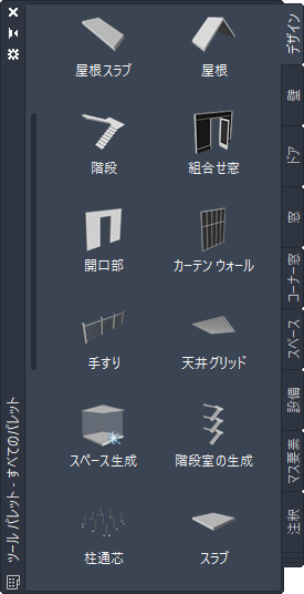 CAD マネージャや他のユーザによって作成されたカスタム パレットには、プロジェクトや会社の標準に合わせてカスタマイズされたゾーン スタイルとプロパティを備えたゾーン ツールが含まれていることもあります。
