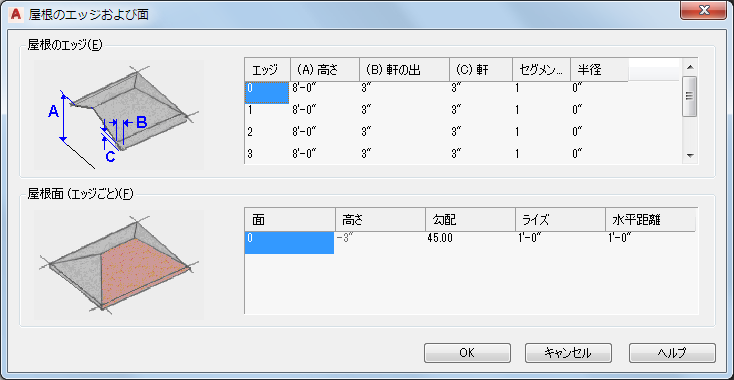 屋根のエッジと面を編集するには、次の手順を実行します。 以下を編集できます。