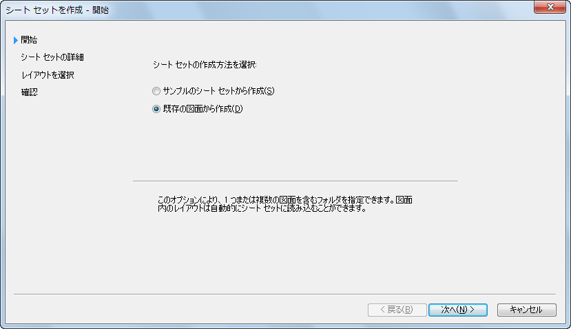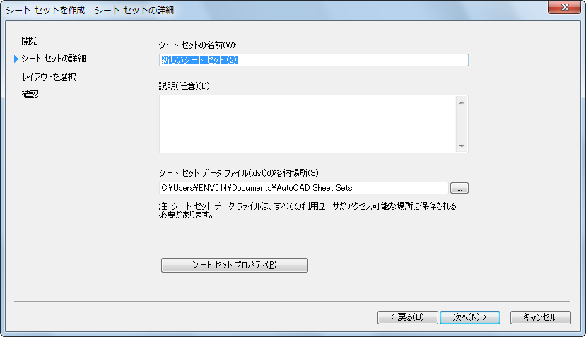 シート セット ウィザードが表示されます。新しいシート セット テンプレートは、このウィザードを使用して作成すると便利です。