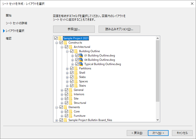 [シート セットを作成 - レイアウトを選択]ダイアログ ボックスが表示されます。