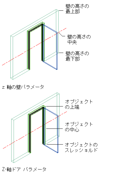 | ドアの上部で計測するには | [宛先]で[オブジェクトの上端(最上部)]を選択します。 |