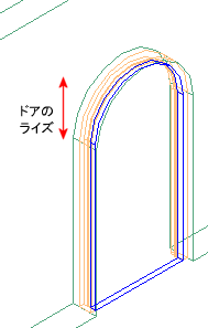 | ライズ | ゴシック ドア形状、アーチ ドア形状、五角形ドア形状にのみ使用可能 | ドアのとがった上端またはアーチした上端の高さを指定します。 図![]() |