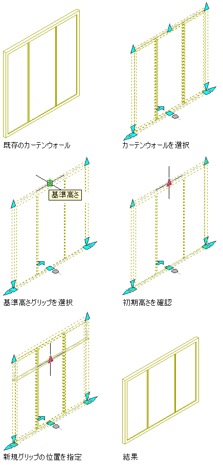 グリップでカーテン ウォールの基準高さを変更するには、次の手順を実行します。