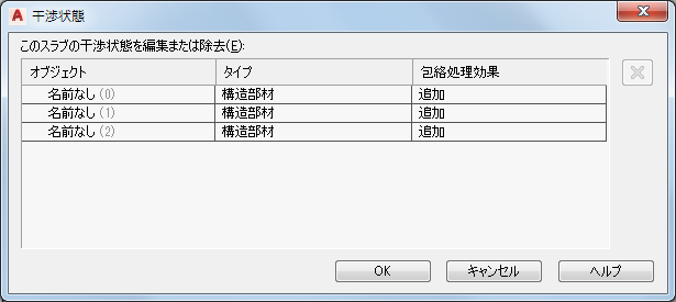 プラン ビュー内のスラブまたは屋根スラブの包絡処理輪郭から干渉状態が追加されるか除外されるかを決定する設定を変更するには、次の手順を実行します。