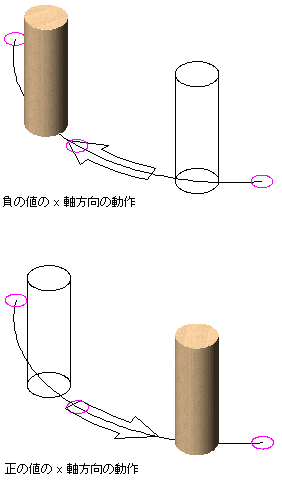 | 曲線までの X 距離を計測する固定オブジェクト上の点を選択する | [終点]に[オブジェクトの始点エッジ]、[オブジェクトの中心]、[オブジェクトの終点エッジ]を選択します。 |