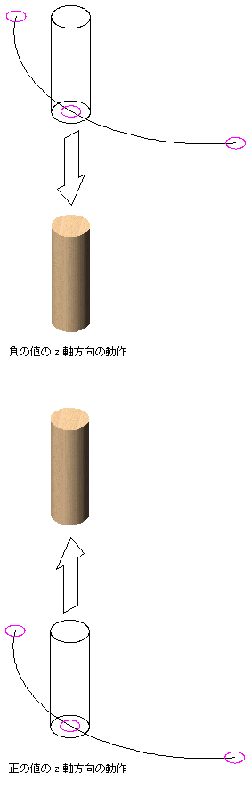 | 曲線までの Z 距離を計測する固定オブジェクト上の点を選択する | [終点]に、[オブジェクトの下部]、[オブジェクトの中心]、または[オブジェクトの上部]を選択します。 |