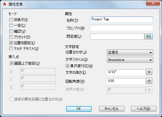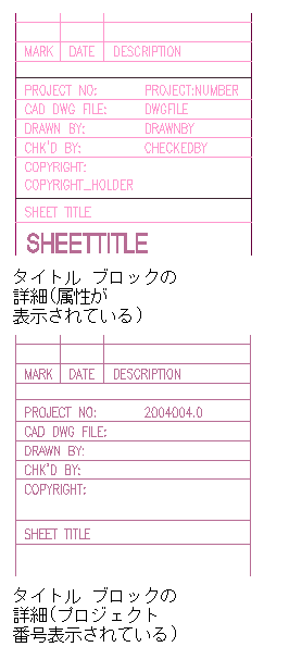 図面のタイトル ブロックのプロジェクト 属性を作成するには、次の操作を実行します。