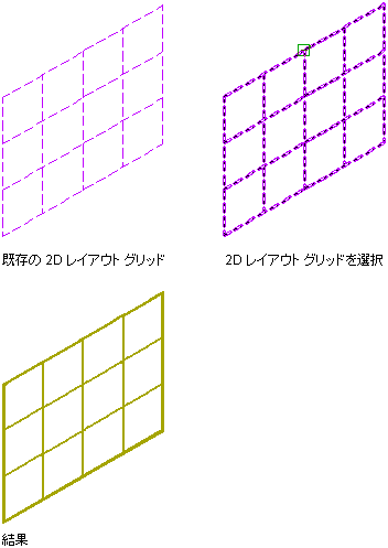 2D レイアウト グリッドを基にしてカーテン ウォール ユニット グリッドを作成することができます。図面に 2D レイアウト グリッドが既に存在する場合は、それらを簡単にカーテン ウォール ユニットに変換することができます。また、レイアウト グリッドを使い慣れている場合は、この方法でカーテン ウォール ユニットを効率的に作成することができ、カーテン ウォール コマンドについてさらに理解を深めることができます。